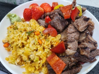 | 일요일 | 토마토 + 삶은 계란 | 홍두깨살 냉채 | 채끝살 스테이크 + 아보카도 |