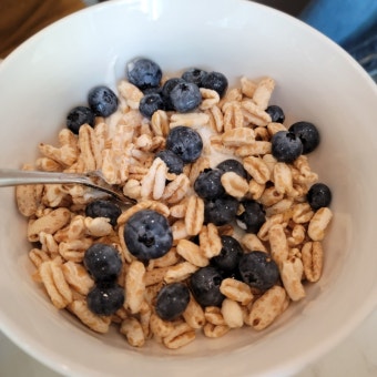 "그릭요거트에 견과류, 블루베리만 넣었는데 아침에 포만감도 좋고, 점심 폭식도 안 하게 돼요."