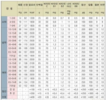 물론 나이, 키, 체중에 따라 차이가 나요.