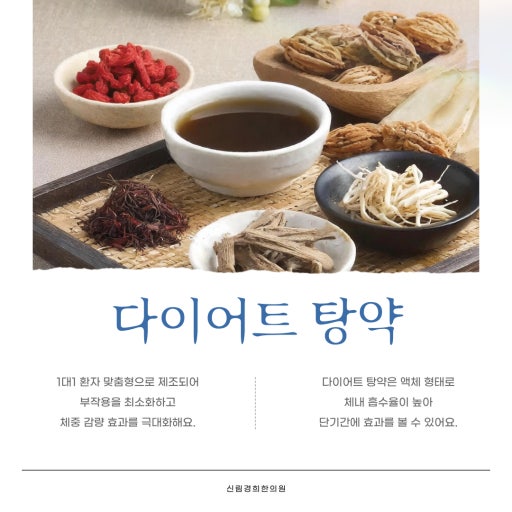 1. 다이어트 한약이란 무엇인가요?다이어트 한약은 말 그대로 체중 감량을 목적으로 맞춤 조제된 한약입니다. 대개는 식욕 억제, 기초대사량 증가, 배출 유도를 주요 목표로 하며, 다양한 약재를