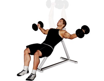 벤치를 아래로 기울여 수행합니다. 아랫가슴이 발달하면 가슴이 더 입체적으로 보입니다.