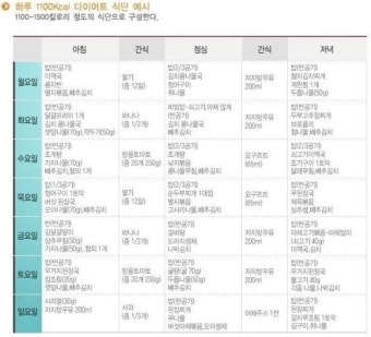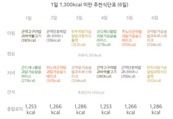 | 월 | 두유+사과+계란 | 현미밥+닭가슴살+야채 | 두부+샐러드+요거트 |