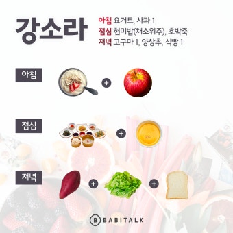 | 두부 반모 또는 연어/계란 | 단백질 공급원 |