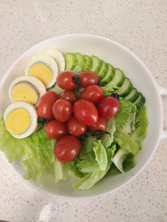| 오이, 방울토마토, 샐러드 | 발사믹 식초, 오일 소량 |