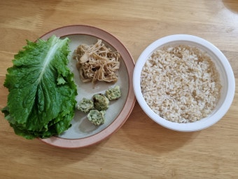 | 금요일 | 미숫가루 + 두유 | 현미비빔밥 | 콩불고기 + 데친 채소 | 호두 4알 |