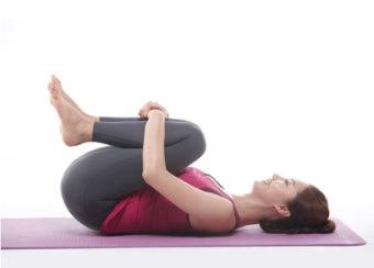 누워서 무릎을 가슴 쪽으로 천천히 끌어당기면 허리 근육이 부드러워집니다.