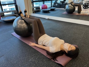 둔근 대신 허리에 힘이 들어가면 운동 효과가 줄어듭니다.