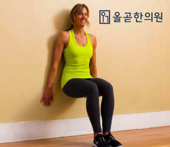 벽에 등을 기대고 앉은 자세로 버티는 운동입니다.