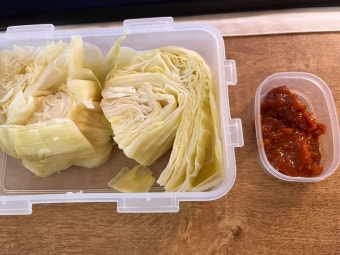- 점심: 현미밥 반 공기 + 닭가슴살 + 상추쌈 + 된장국