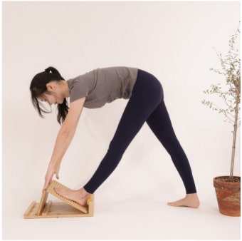 - 뒤에 있는 발꿈치를 바닥에 고정한 뒤 상체를 앞으로 이동합니다.