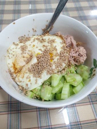 - 아침: 삶은 달걀 2개 + 오이